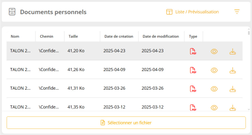 Une nouvelle zone de partage documentaire sécurisée avec chacun de vos employés vous permet d’y déposer automatiquement tout document à partager, soit produit automatiquement par votre solution CTRL ou directement de façon manuelle.